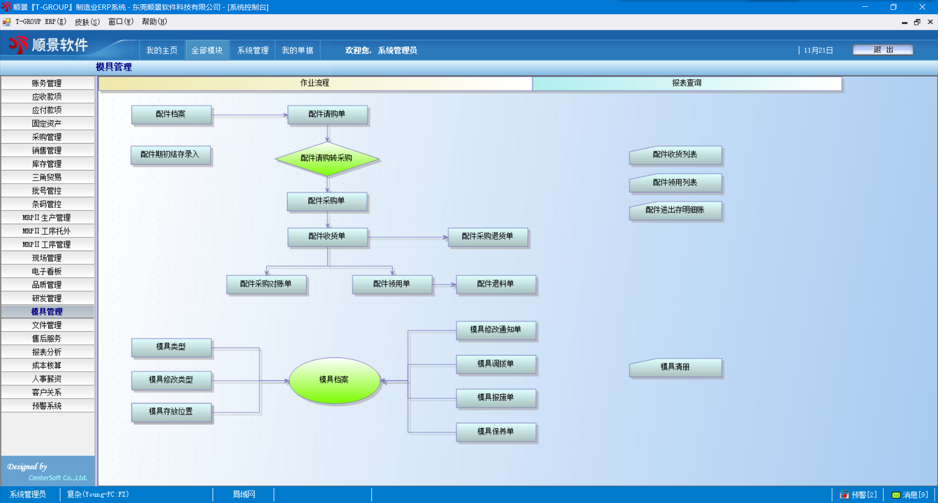 顺景ERP管理系统是面向制造企业以智能制造与精益管理为核心的一体化管理软件,以制造企业一体化管理的ERP思想核心下,